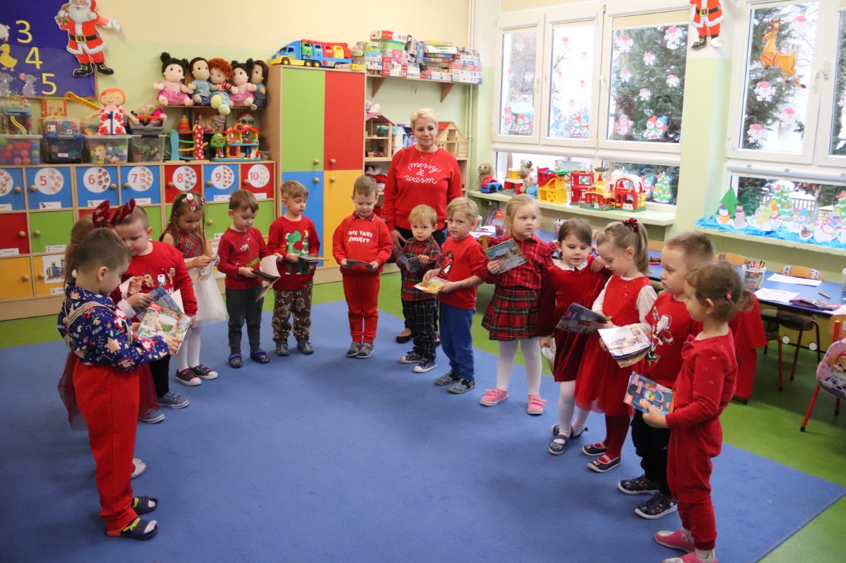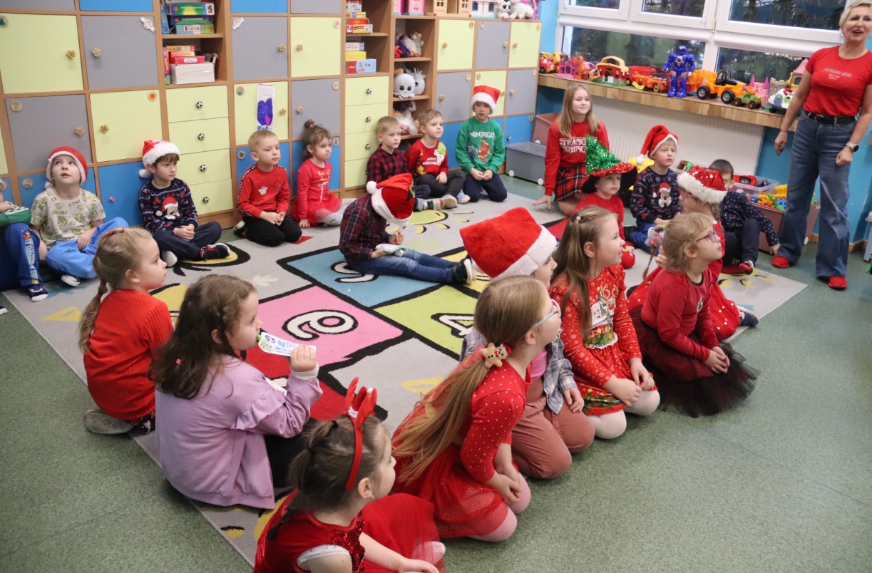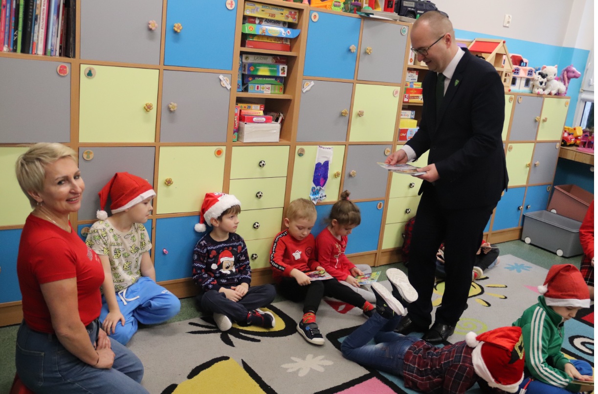 Dzieci z dużym zainteresowaniem słuchały gościa, chętnie odpowiadając na pytania i dzieląc się swoimi wrażeniami. Wizyta sprawiła im wiele radości i wprowadziła wszystkich w wyjątkowy, świąteczny nastrój.