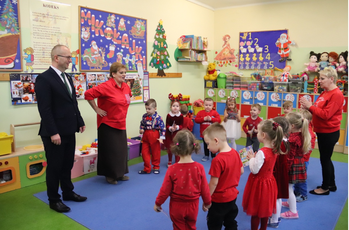 W radosnej atmosferze upłynął dzisiejszy dzień naszym przedszkolakom z grupy „Pszczółki”, „Skrzaty i „Słoneczka”. Z okazji jutrzejszych mikołajek odwiedził je Burmistrz Miasta Grajewo, Maciej Paweł Bednarko, który przywiózł ze sobą nie tylko serdeczne życzenia, lecz także drobne upominki.