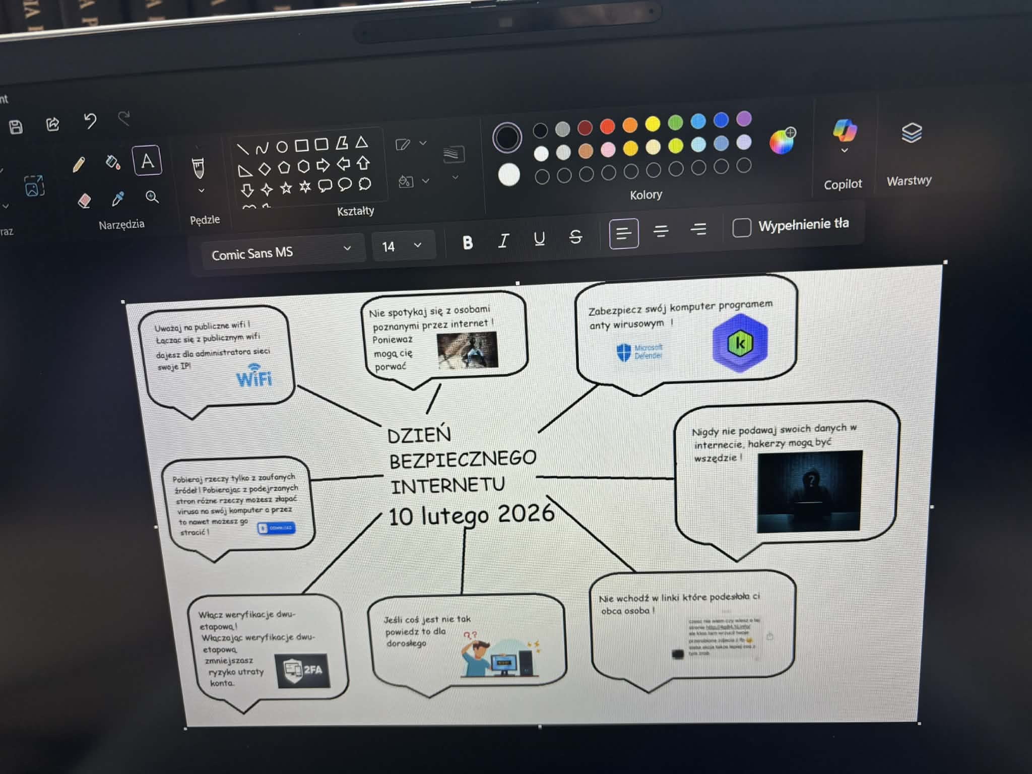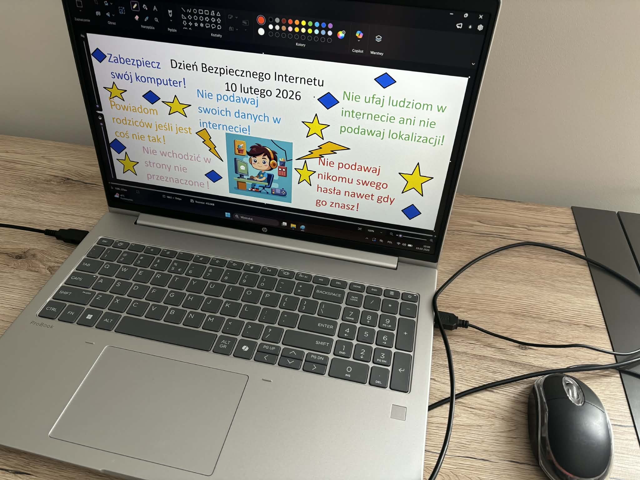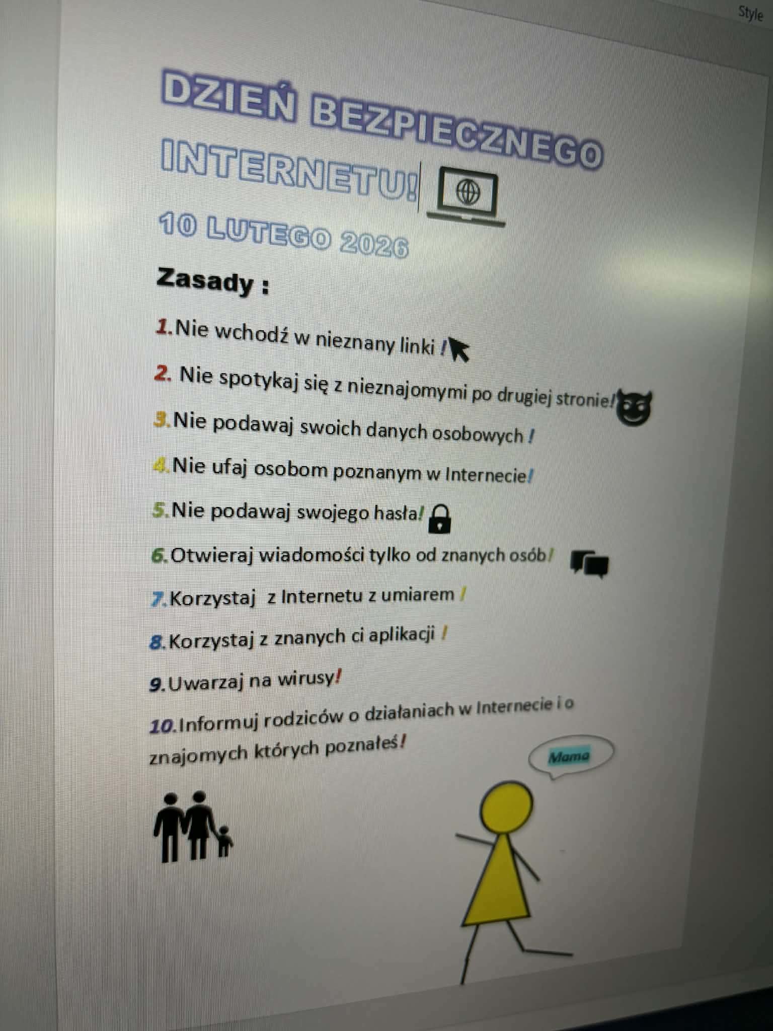 W naszej szkole odbyły się obchody Dnia Bezpiecznego Internetu, których celem było promowanie odpowiedzialnego i świadomego korzystania z sieci przez uczniów. Wydarzenie zostało zorganizowane w ramach międzynarodowej inicjatywy Safer Internet, mającej na celu zwiększanie świadomości na temat zagrożeń online oraz zasad bezpiecznego poruszania się w świecie cyfrowym.