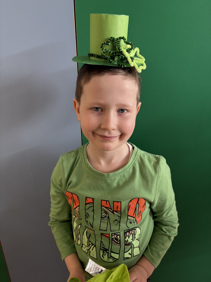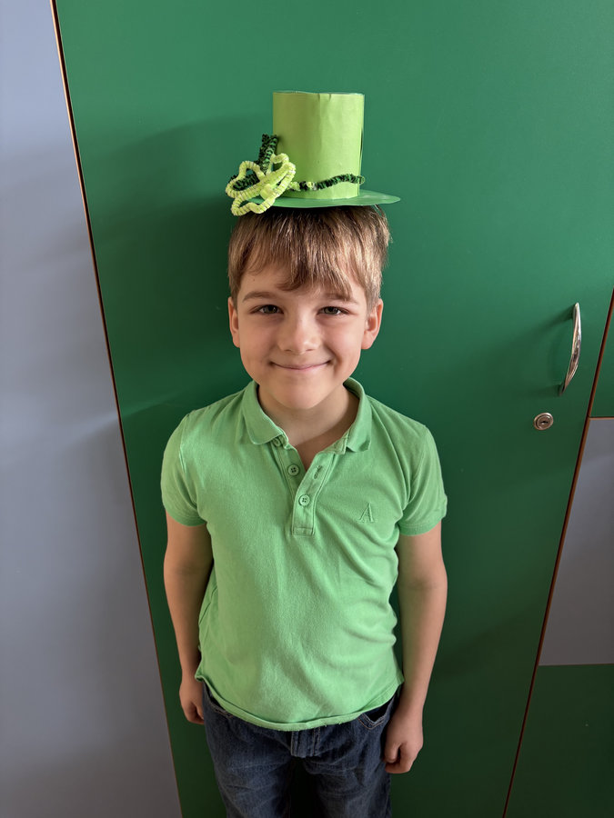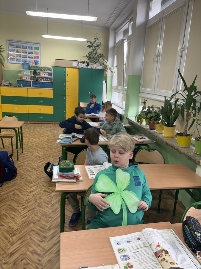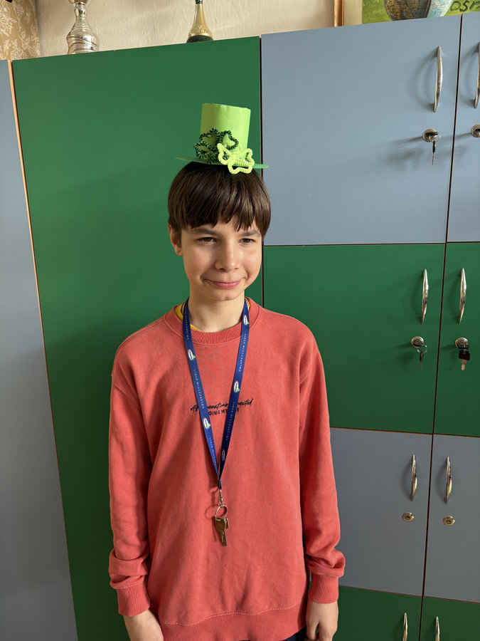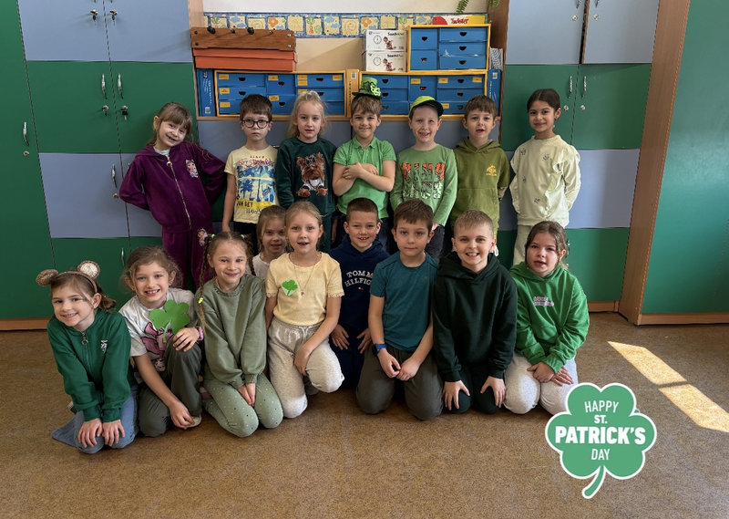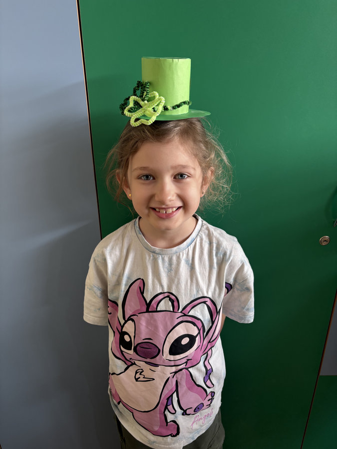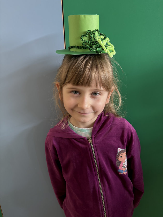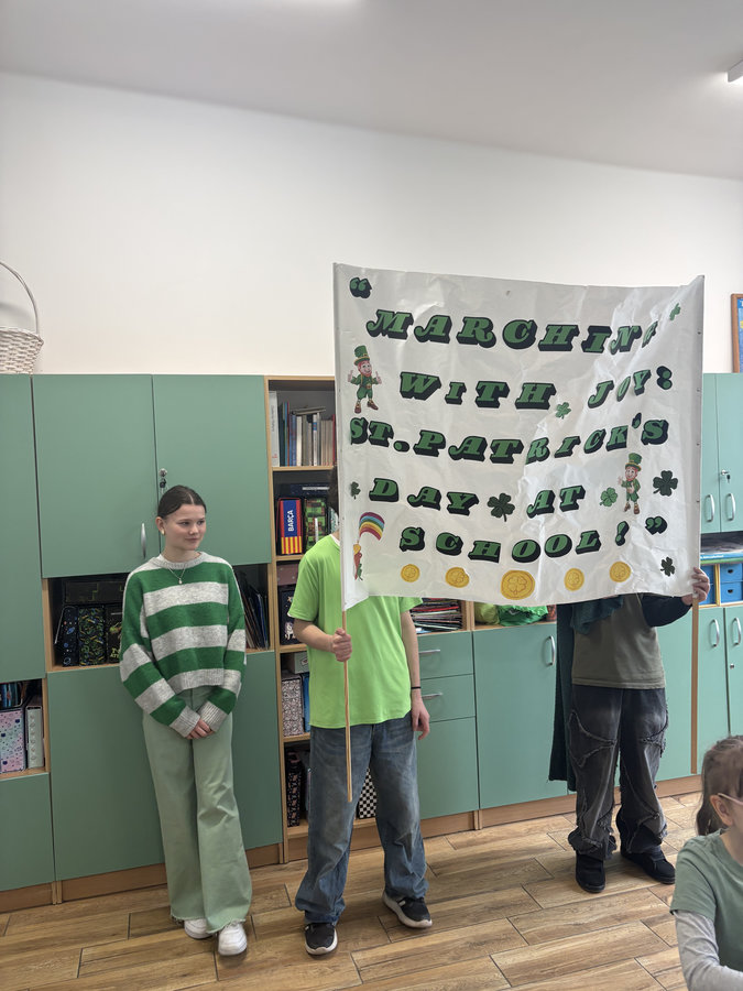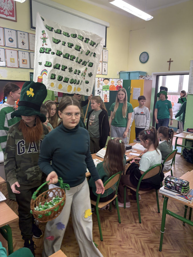 Podczas lekcji języka angielskiego uczniowie poznawali ciekawostki, tradycje i fakty związane z irlandzkim świętowaniem. Był to dzień pełen dobrej energii, wspólnej zabawy i zielonego nastroju — radosny, kolorowy i niemal wiosenny!