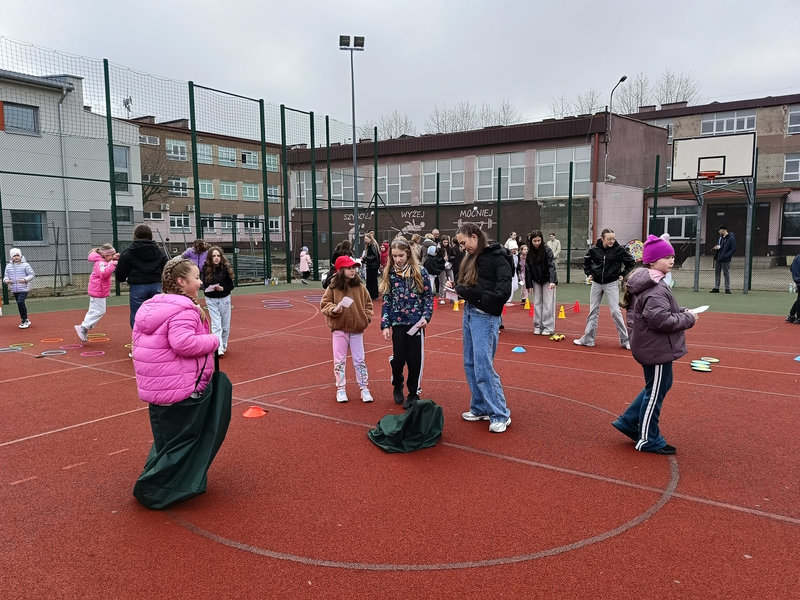 Całe wydarzenie przebiegło w niezwykle przyjaznej i pełnej entuzjazmu atmosferze. Uczniowie nie tylko rywalizowali, ale przede wszystkim wspólnie spędzali czas, integrując się i ciesząc pierwszymi oznakami wiosny. Był to dzień pełen śmiechu, energii i niezapomnianych chwil.