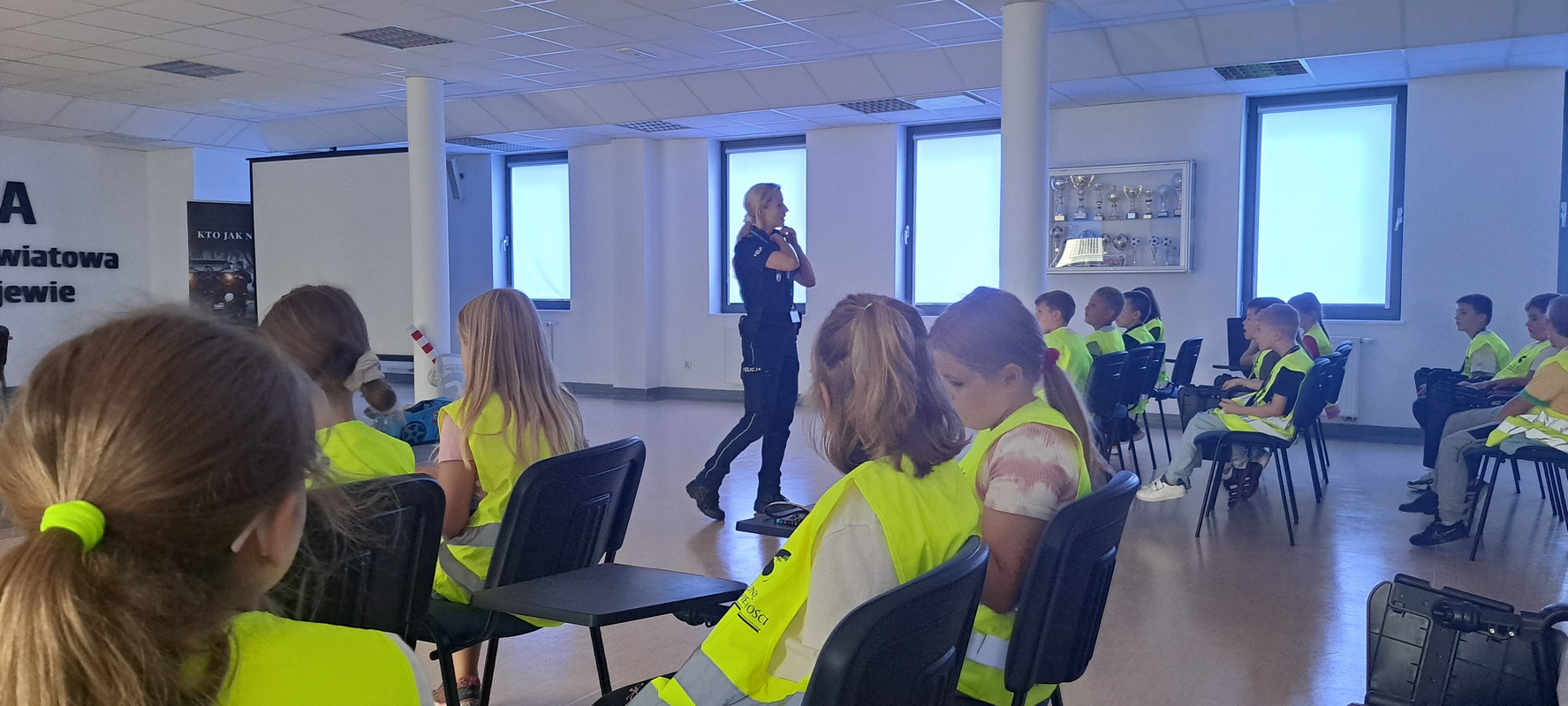 Podczas spotkania funkcjonariusze oprowadzili uczniów po budynku komendy. Pokazali pokój przesłuchań nieletnich, miejsce pracy policjantów dzielnicowych, salę konferencyjną, siłownię, strzelnicę oraz garaż. Znaczna część wizyty poświęcona była na omówienie zasad bezpiecznego poruszania się po drodze oraz właściwego reagowania w sytuacjach zagrożenia. Uczniowie aktywnie uczestniczyli w pogadankach z policjantami, zadawali wiele pytań i chętnie dzielili się swoimi spostrzeżeniami. Ta wizyta była ciekawą i pouczającą lekcją wychowania obywatelskiego.