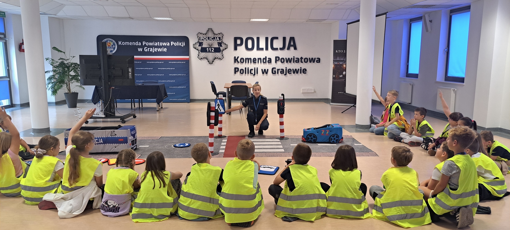 22 września, korzystając z ostatniego dnia lata, uczniowie klasy II a odwiedzili Komendę Powiatową Policji w Grajewie. Celem tej wizyty było poznanie pracy policjantów oraz utrwalenie zasad bezpieczeństwa.