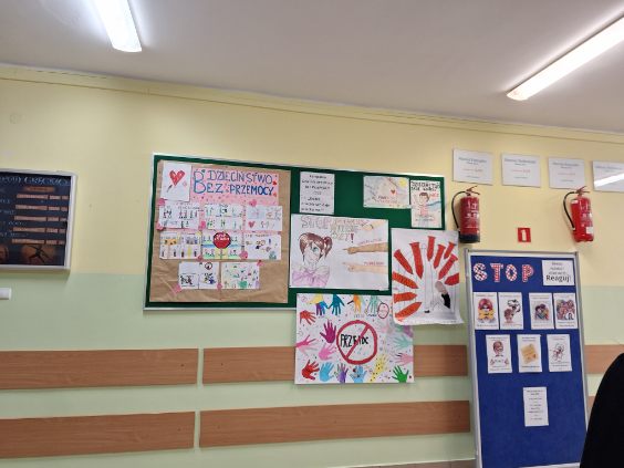 Naszą szkołę reprezentowała klasa VII a z wychowawczynią p. Beatą Szewczyk oraz pedagogiem specjalnym Anną Formejster. Uczniowie nieśli okolicznościowe transparenty i plakaty. W ramach akcji wiele klas na godzinach wychowawczych tworzyło plakaty przedstawiające sprzeciw wobec przemocy, które wyeksponowano na korytarzu szkolnym. W ten sposób zwracamy uwagę całej społeczności szkolnej na problem przemocy wobec dzieci i reagowania na wszelkie sygnały alarmowe.