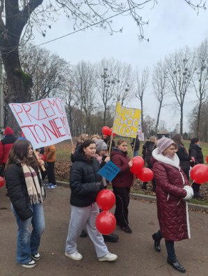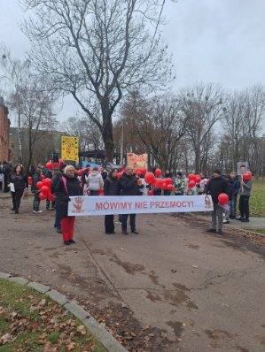 19 listopada 2025 r. nasza szkoła uczestniczyła w II edycji Ogólnopolskiej Kampanii ,,Dzieciństwo bez przemocy’’, w ramach której w Grajewie odbył się marsz przeciw przemocy wobec dzieci. Wydarzenie miało na celu podniesienie świadomości społecznej na temat problemu przemocy wobec dzieci. Tegoroczna akcja rozpoczęła się zbiórką przedstawicieli wszystkich szkół, UM, MOPS, Miejskiego Zespołu Interdyscyplinarnego, KPP pod grajewskim ,,Hadesem’’. Marsz uroczyście otworzył Burmistrz Miasta Grajewo- pan Maciej Bednarko. Po słowach kończących przemówienie pana Burmistrza ,,Idziemy wspólnie z mocą przeciw przemocy!’’ wszyscy ruszyli ulicami naszego miasta manifestując niesione hasła.