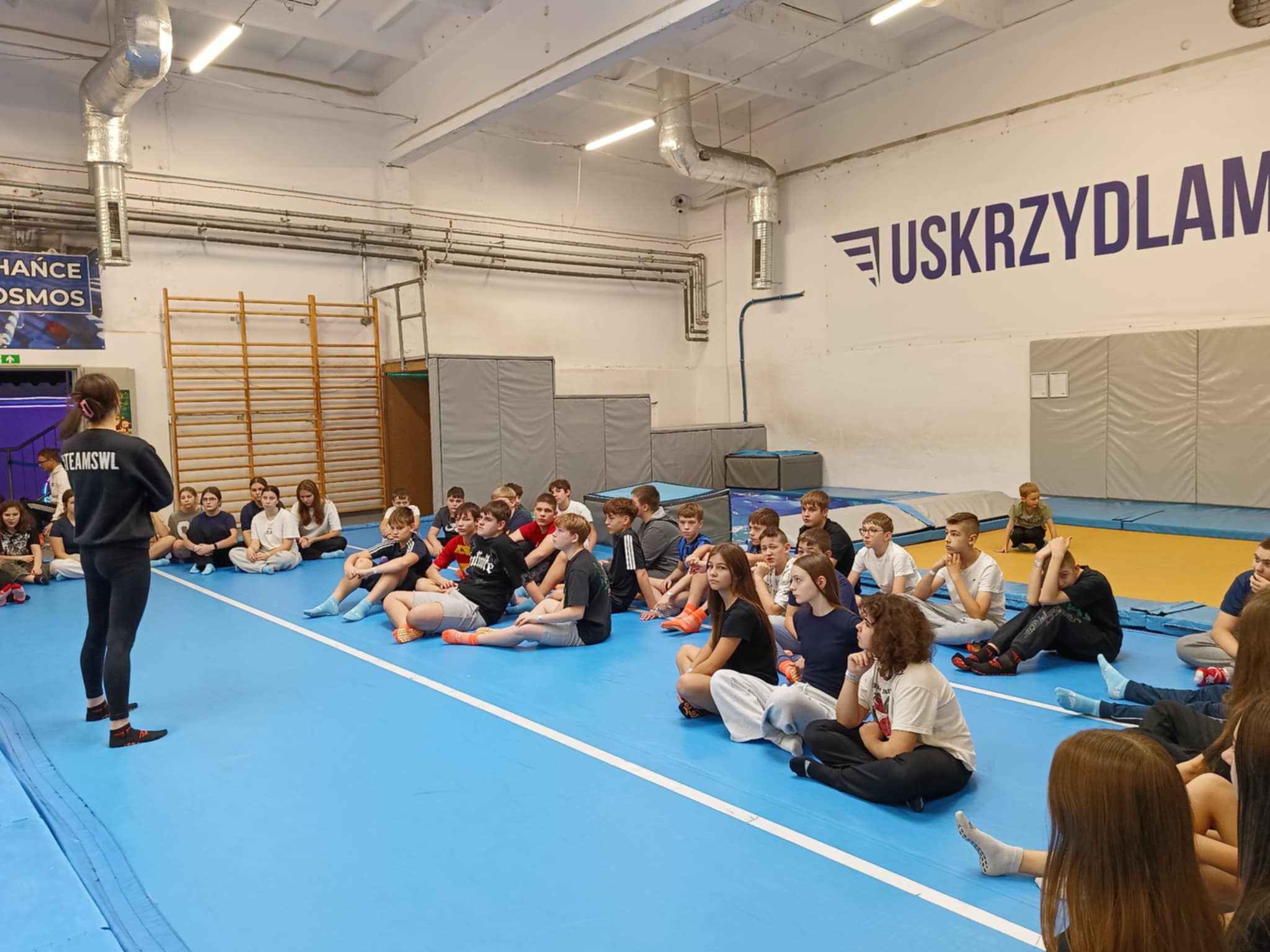 Na uczniów czekały tysiące metrów kwadratowych atrakcji: trampoliny, strefy sportowe, dmuchańce, zjeżdżalnie, tory przeszkód oraz interaktywne zabawy. Nad ich bezpieczeństwem i dobrą zabawą czuwali doświadczeni trenerzy i animatorzy. Najwięcej radości sprawiło uczniom skakanie na trampolinach. Chętnie uczestniczyli także w zajęciach sportowych i próbowali swoich sił w różnych konkurencjach, za co otrzymali upominki od prowadzących je trenerów. Po pełnym atrakcji pobycie wszyscy udali się do McDonald’s, gdzie czekał na nich pyszny posiłek i chwila odpoczynku.