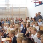 Po wprowadzeniu sztandaru szkoły i odśpiewaniu hymnu głos zabrał Dyrektor Pan Karol Choynowski. Powitał zgromadzonych w nowo wyremontowanej sali gimnastycznej, podkreślając znaczenie współpracy i wyrażając wdzięczność Burmistrzowi Panu Maciejowi Pawłowi Bednarko za osobiste zaangażowanie w rozwój szkoły, które stanowi fundament przyszłych sukcesów. Przedstawił wychowawczynie klas pierwszych – Panią Katarzynę Bobrowską, Panią Joannę Bernatek, Panią Karolinę Klimaszewską i Panią Katarzynę Górską. Szczególne słowa skierował do najmłodszych uczniów, życząc im odwagi, radości i wytrwałości na rozpoczynającej się edukacyjnej drodze.