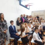 Następnie głos zabrali zaproszeni goście. Burmistrz Miasta Grajewo, w imieniu swoim i Rady Miasta, podziękował za zaproszenie i życzył pierwszoklasistom siły, energii oraz wielu sukcesów w nauce. Ksiądz Dariusz Gosk podkreślił rolę edukacji w kształtowaniu przyszłych pokoleń, przypominając, że zadaniem dorosłych jest „dodawanie skrzydeł” i zaprosił wszystkich na Mszę Świętą w Parafii pw. Świętego Ojca Pio w najbliższą niedzielę o godzinie 10.00. Sierżant Maciej Rafałowski życzył uczniom bezpiecznego i przyjaznego roku szkolnego, przypominając o zasadach bezpieczeństwa w drodze do i ze szkoły, podczas zajęć oraz w czasie wolnym.
