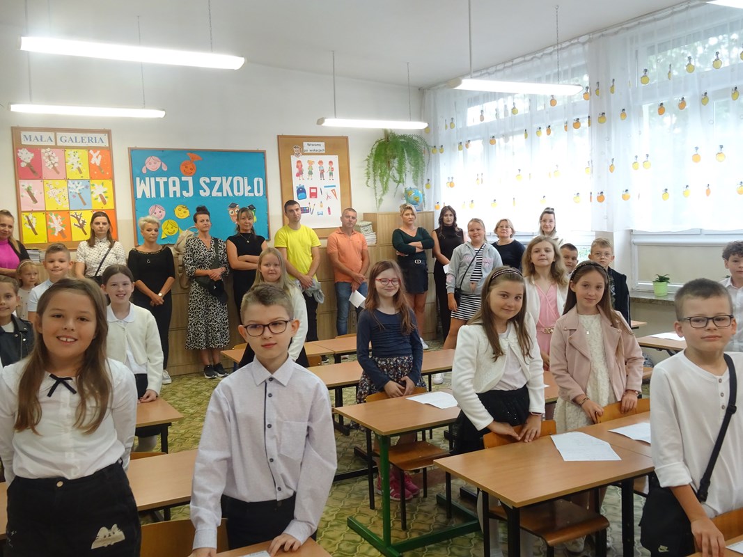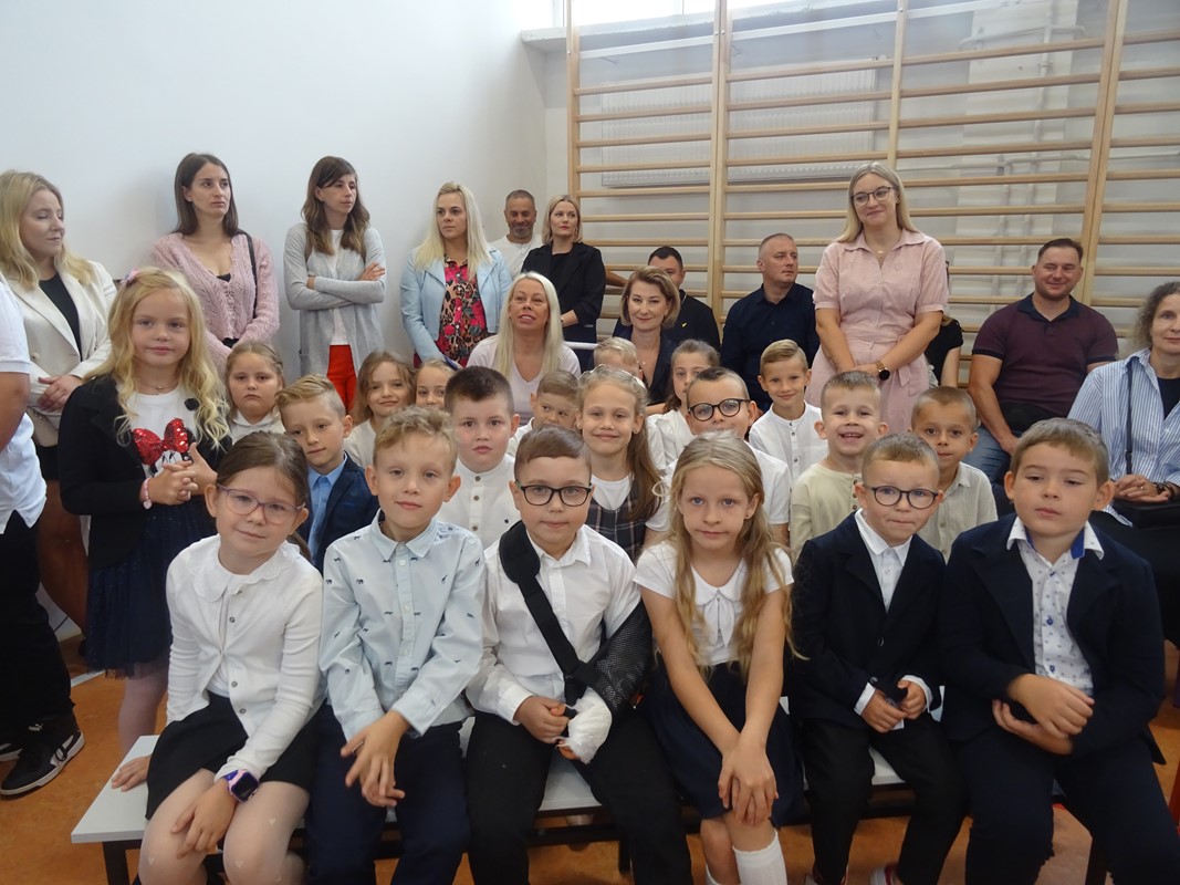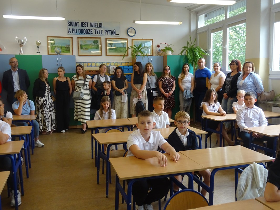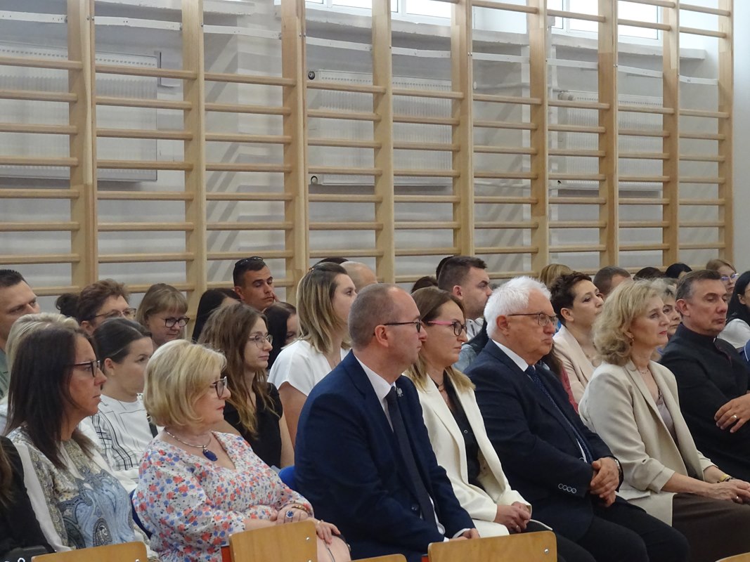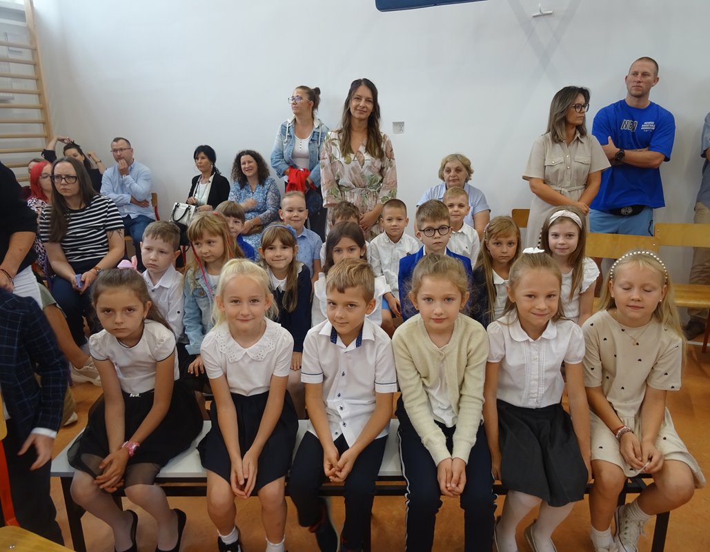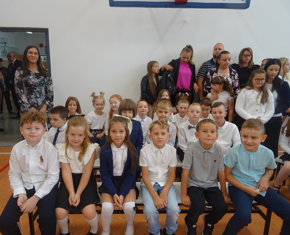 Po wprowadzeniu sztandaru szkoły i odśpiewaniu hymnu głos zabrał Dyrektor Pan Karol Choynowski. Powitał zgromadzonych w nowo wyremontowanej sali gimnastycznej, podkreślając znaczenie współpracy i wyrażając wdzięczność Burmistrzowi Panu Maciejowi Pawłowi Bednarko za osobiste zaangażowanie w rozwój szkoły, które stanowi fundament przyszłych sukcesów. Przedstawił wychowawczynie klas pierwszych – Panią Katarzynę Bobrowską, Panią Joannę Bernatek, Panią Karolinę Klimaszewską i Panią Katarzynę Górską. Szczególne słowa skierował do najmłodszych uczniów, życząc im odwagi, radości i wytrwałości na rozpoczynającej się edukacyjnej drodze.