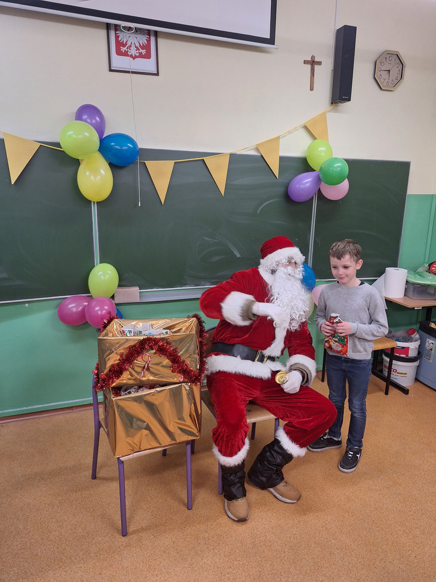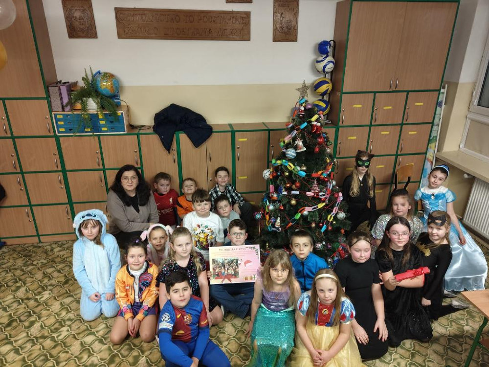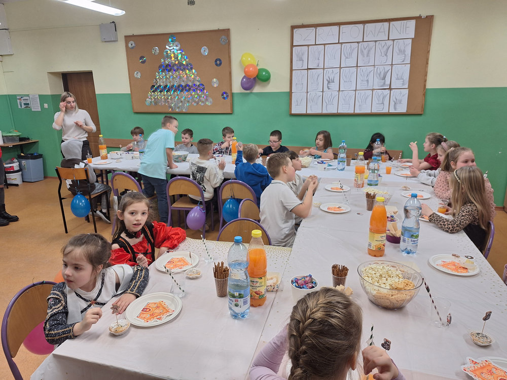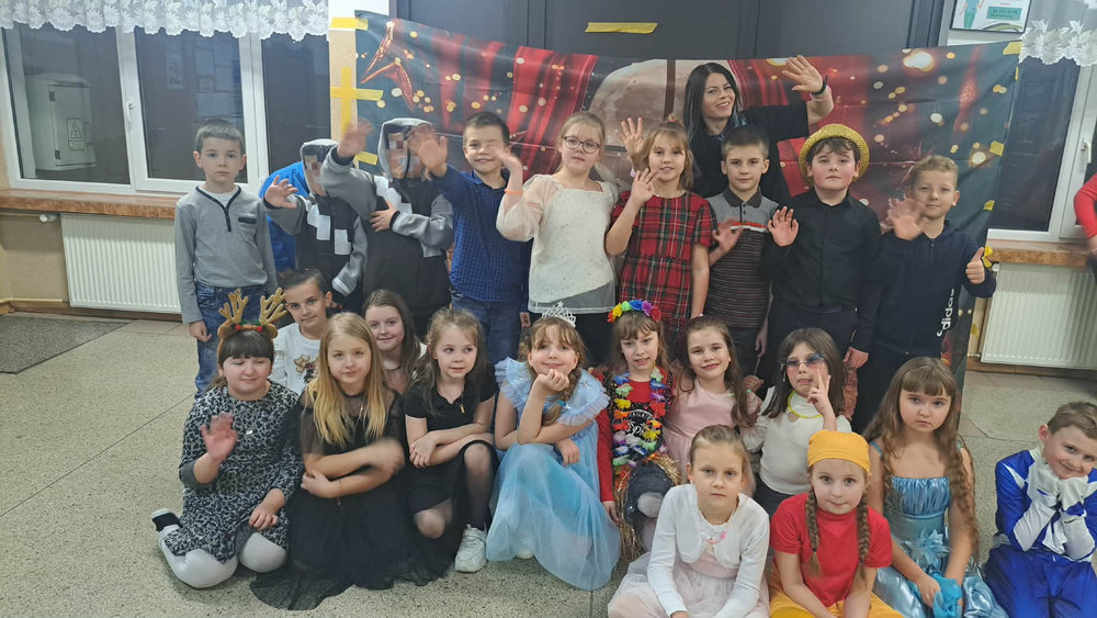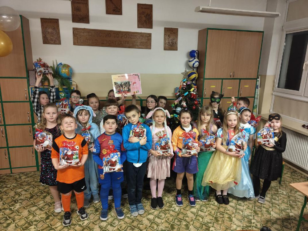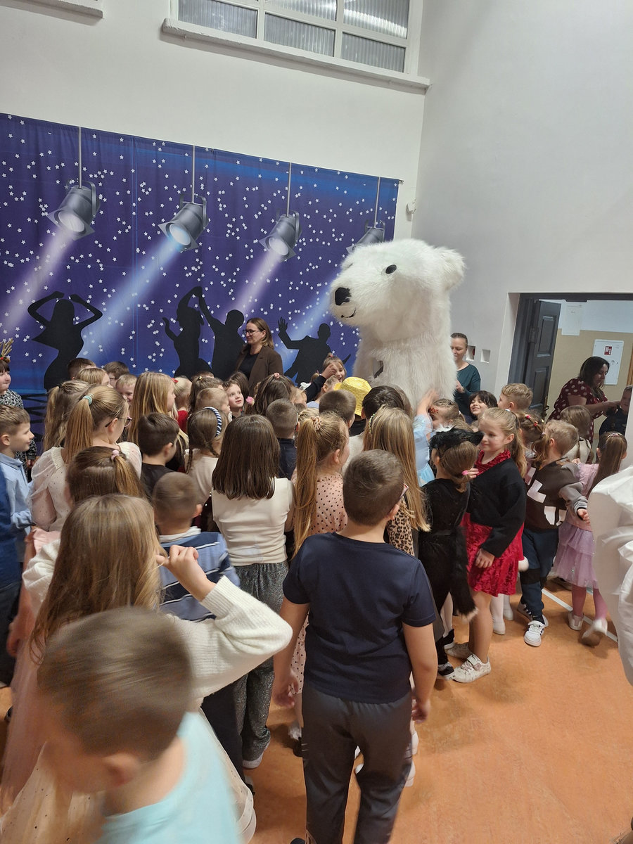 14 stycznia w naszej szkole odbyła się zabawa choinkowa. Przedszkolaki i uczniowie klas I – III świetnie bawili się na dyskotece, na którą dzieci przyszły przebrane w kolorowe stroje. Podczas zabawy odwiedził nas biały miś. Po wspólnych tańcach w klasach czekał na uczniów poczęstunek przygotowany przez rodziców. Nie zabrakło również Mikołaja oraz prezentów, które sprawiły dzieciom wiele radości.
