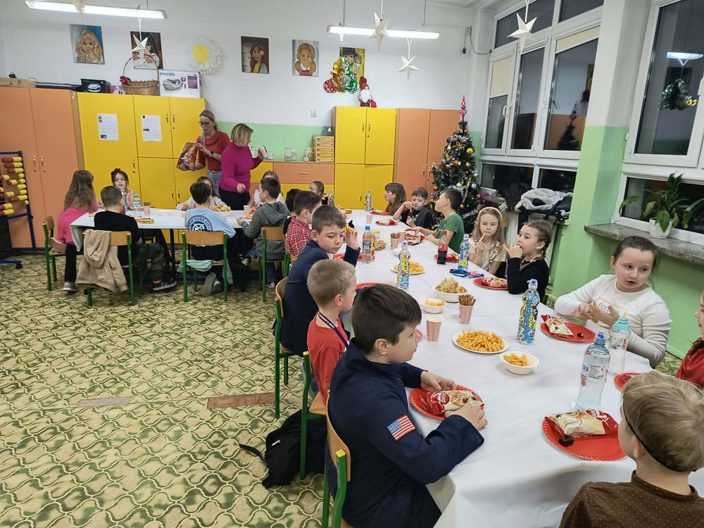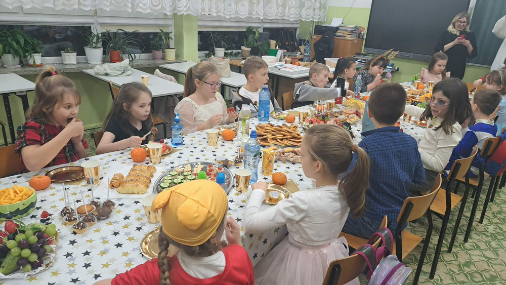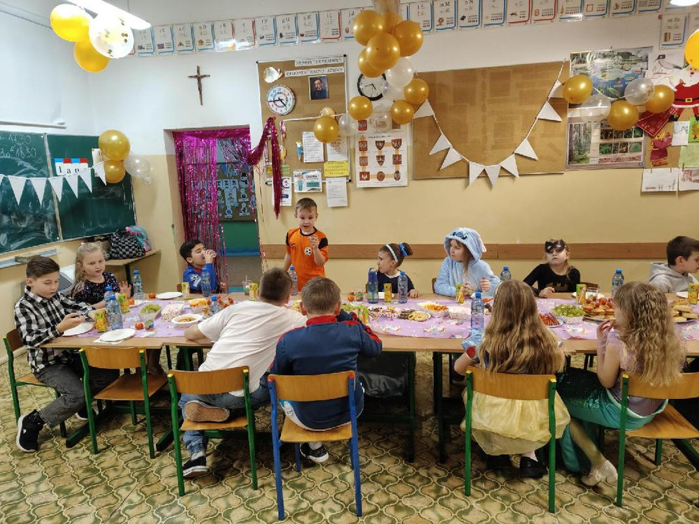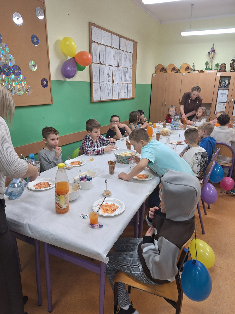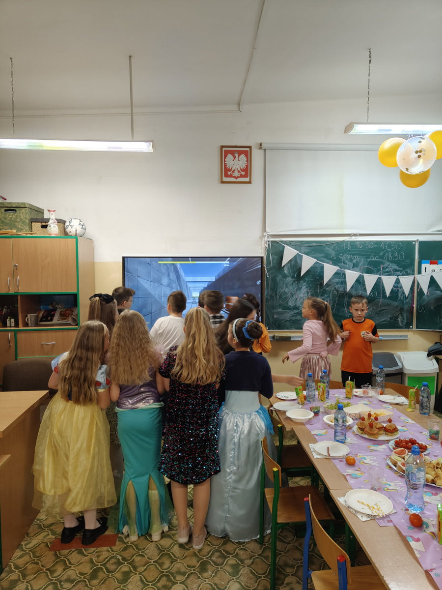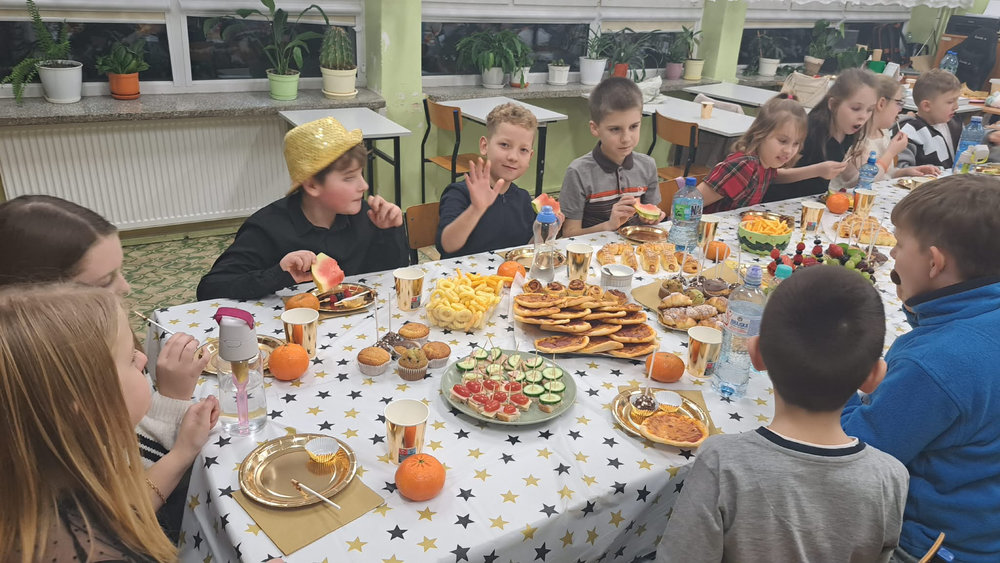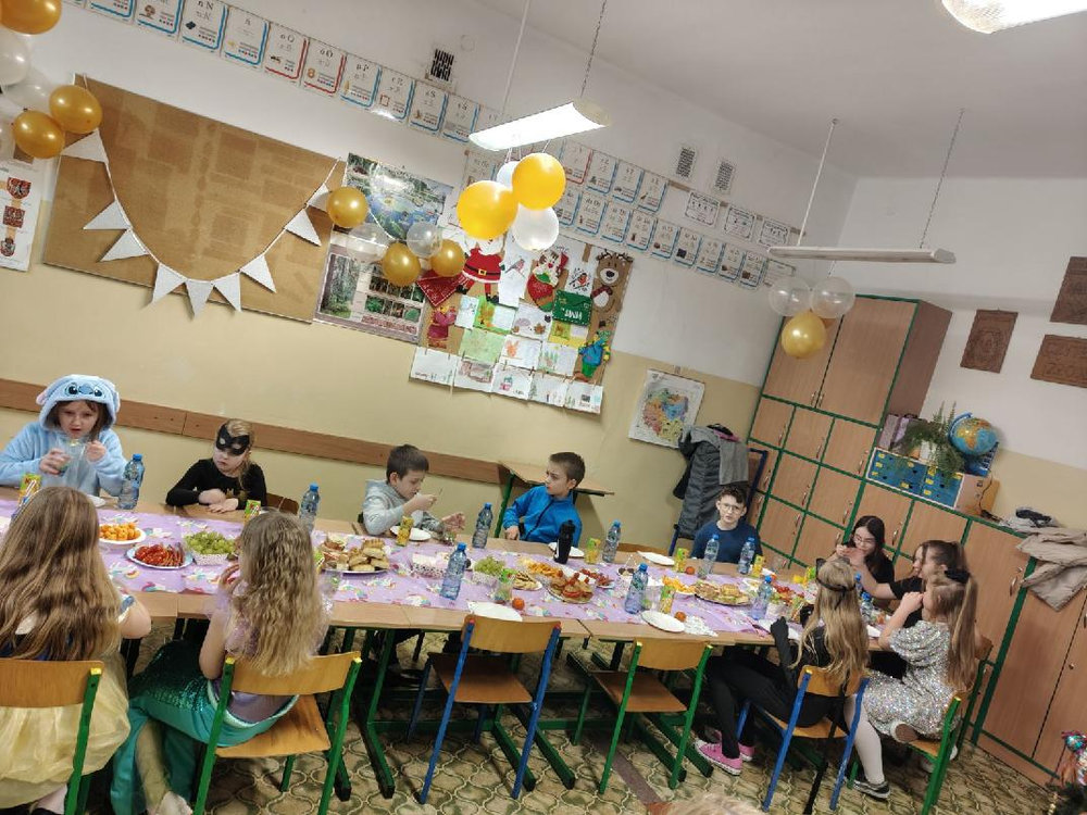 14 stycznia w naszej szkole odbyła się zabawa choinkowa. Przedszkolaki i uczniowie klas I – III świetnie bawili się na dyskotece, na którą dzieci przyszły przebrane w kolorowe stroje. Podczas zabawy odwiedził nas biały miś. Po wspólnych tańcach w klasach czekał na uczniów poczęstunek przygotowany przez rodziców. Nie zabrakło również Mikołaja oraz prezentów, które sprawiły dzieciom wiele radości.